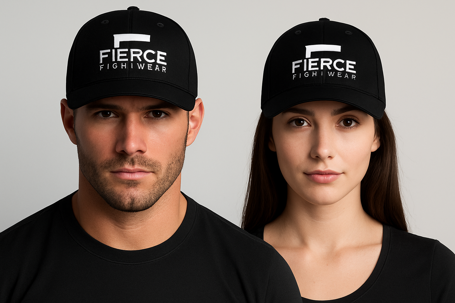 Our Fierce Fightwear lovely fitting five panel baseball caps with adjustable strap on the back. These have the classic Fierce Fightwear logo embroided on front and a smaller "Fierce" on the side making them stylish and practical.